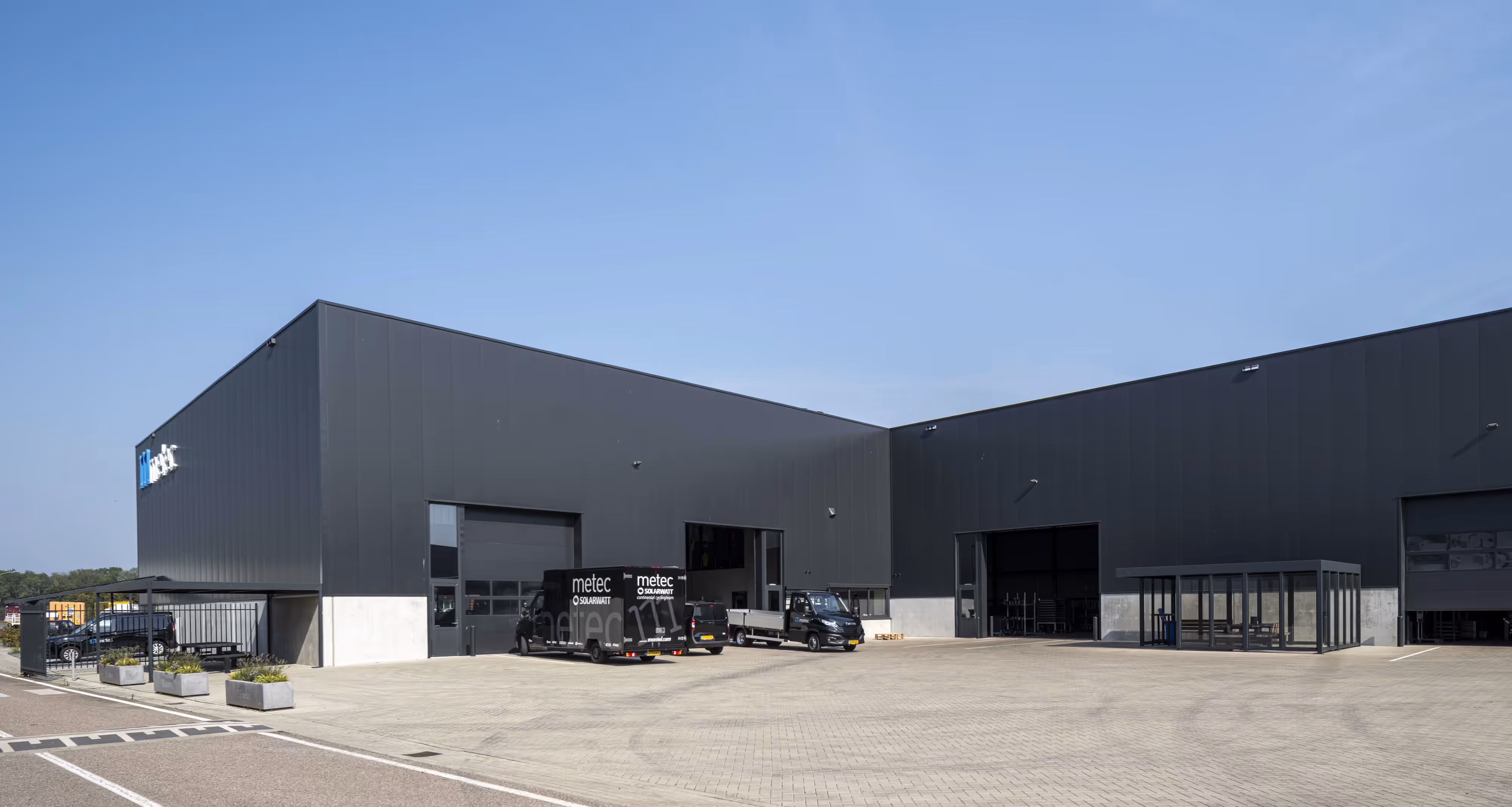 Voor Metec in Tiel realiseerden we een nieuwbouw bedrijfshal van 2.600 m². Van ontwerp tot vergunningstraject en volledige bouwkundige uitvoering: we namen het hele proces uit handen. Ook de installaties maakten we integraal onderdeel van het bouwplan, zodat alles klopt, tot in de details.